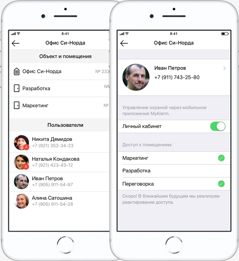 Компания C-Nord отказалась от авторизации по логину и паролю. К сожалению, использовать всем офисом «admin / 123456» больше не получится. В MyAlarm у каждого пользователя свой аккаунт, привязанный к номеру личного телефона. При авторизации необходимо ввести телефон и код из СМС.