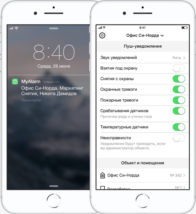 MyAlarm отправляет пуш-уведомления по самым важным событиям: тревоги, взятия / сняти, неисправности и другие.